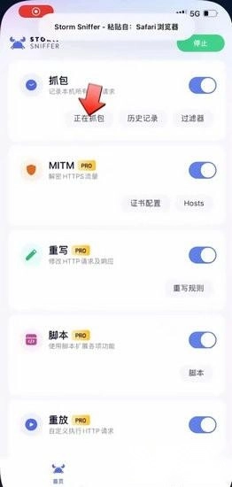 在首页,用户点击开启【抓包】