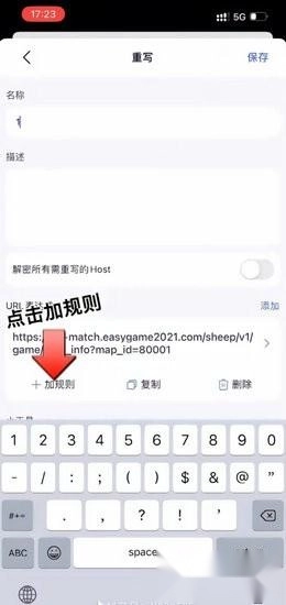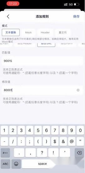 在获取的抓包流程里,找到后缀是90016的地址,右滑将其添加到重写规则中,然后修改对应的URL。