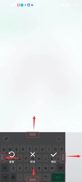 在“键盘高度调节”页面完成重置操作后,按照页面提示移动键盘,就能调整其大小。