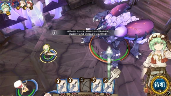 每个回合允许进行一次移动操作,当目标处于可移动的范围内时,能够直接通过拉动武器卡的方式,移动到能够发起攻击的位置。