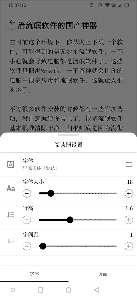 阅读器:清理文章中的干扰信息,对内容进行重新排版,并提供字体、间距等高度个性化的阅读设置选项,为用户营造舒适的阅读氛围。
