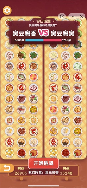 同时点击“今日话题”,玩家可在此选择阵营参与挑战,通关后能为所属阵营增加1道菜,零点前菜数较多的阵营将获胜;此外,每次通关还会获得皮肤奖励,现在我们点击“加入对抗”。