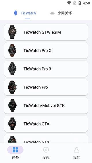 从列表中选择您的TicWatch手表型号。
