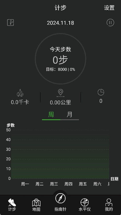 应用的计步功能能够记录用户当天的运动情况,并且还会提供本周与本月的运动数据统计。