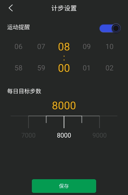 - 支持记录每日、每周和每月的步数情况,还能设定步数目标并查看完成进度。