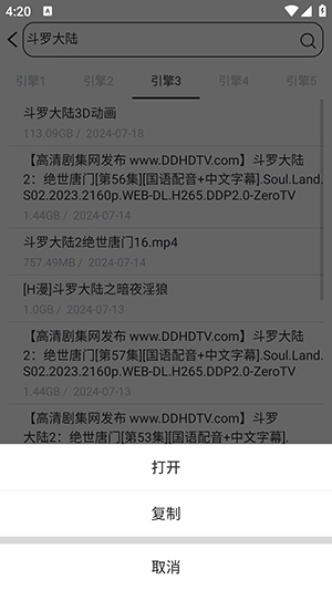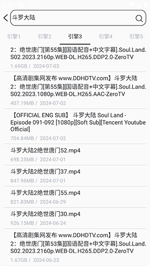 目前软件配备了9个搜索引擎,您只需点击顶部的选择栏,就能自由挑选引擎进行搜索。