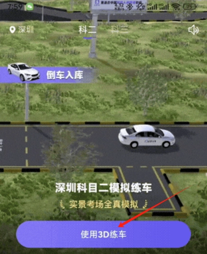 安装拿捏驾考应用后打开它,点击“使用3D练车”功能,就能进行科目二的实景全真模拟练车。