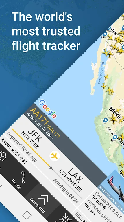 这款软件具备增强现实视图功能,用户仅需把设备的摄像头朝向天空,即可识别出从头顶掠过的飞机,进而查看飞机照片、飞行轨迹、时刻表、机型、速度、高度等各类详细信息。