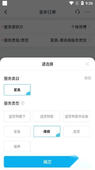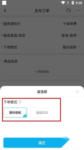 选择下单模式时,你既可以通过报价来寻找服务,也可以自行指定师傅上门提供服务。