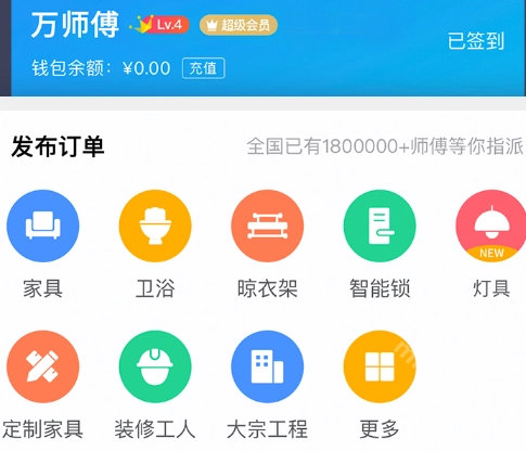 师傅这边资源很充足,能提供的服务项目也特别齐全,像安装、维修、清洗、保洁、疏通、拆旧这些都包含在内,总共覆盖了260多个不同的服务类目。