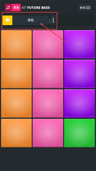 在【KIT-FUTURE-BASS】界面中,点击顶部的【课程】板块,就能切换到课程相关的内容页面,这个界面主要是为音乐类课程学习或创作操作提供服务的。