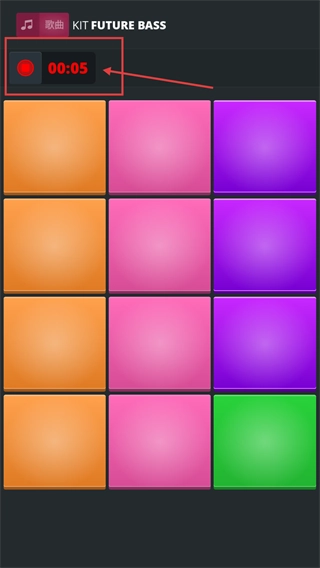 在音乐操作界面,点击左上角的录制按钮,就能开启录音功能,此时界面会出现【00:05】这类显示录制时长的计时。