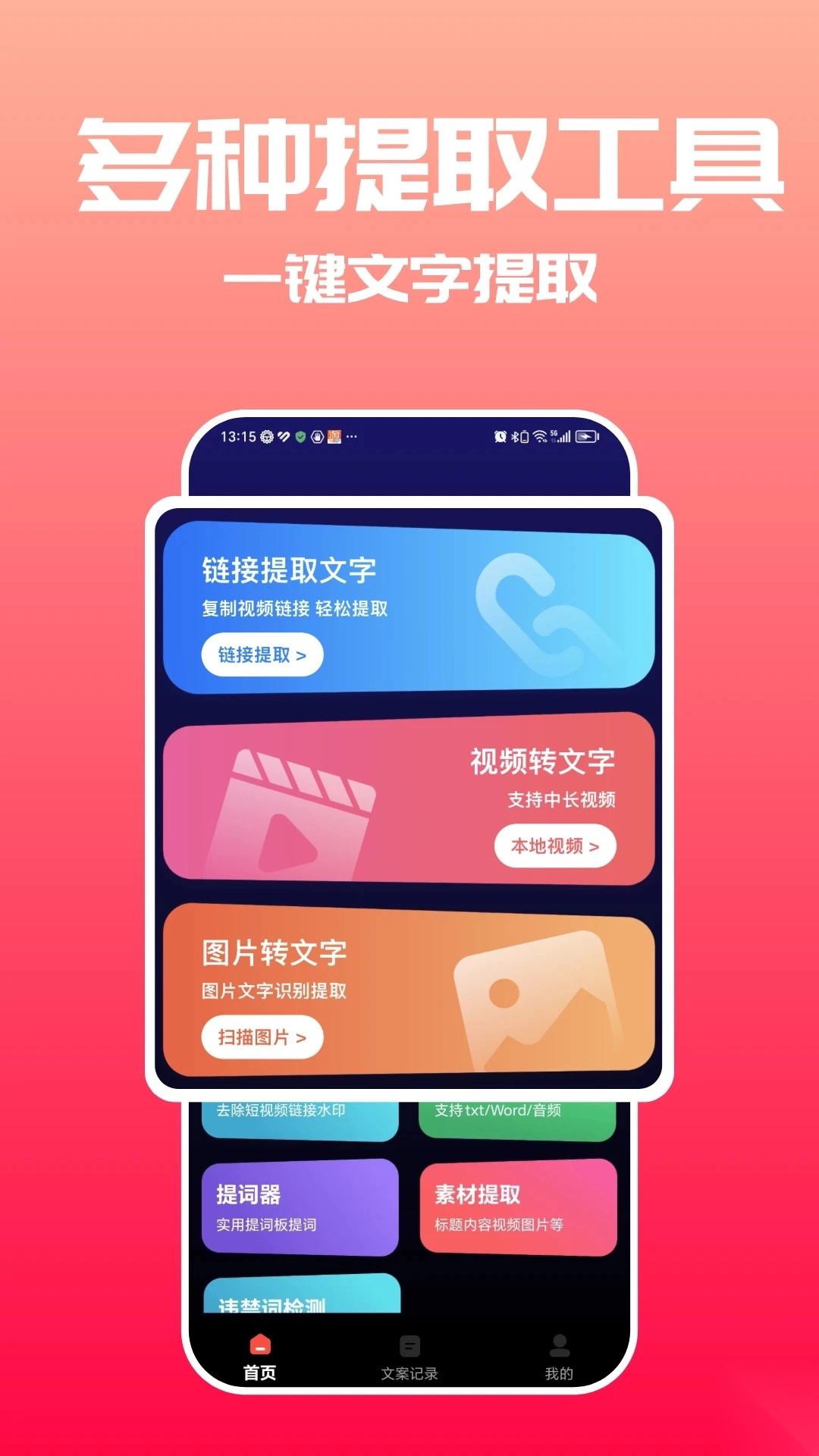 5、视频链接提取:一键获取音视频文字。
