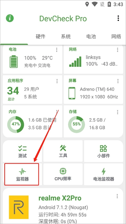 能够在运行其他应用程序的过程中,对CPU频率、温度、GPU频率、电池状态以及系统负载进行实时监测。