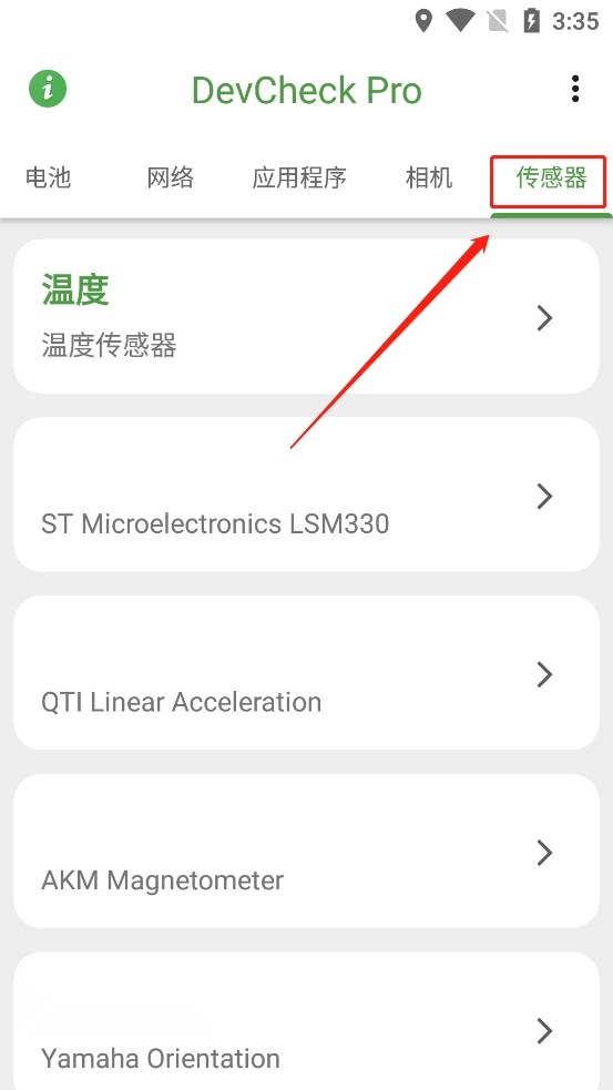 然后点击压力传感器,这里的压力传感器其实就是气压计,通常在正常情况下数值会如下所示(数值可能存在差异)。