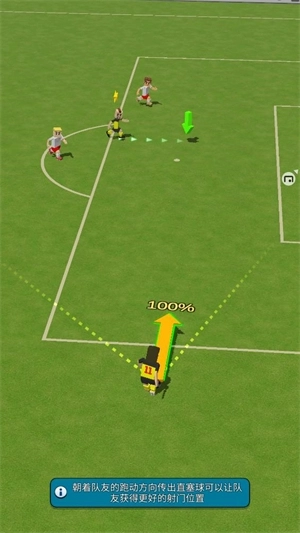 3、把球传给队友后,还能操控队友来决定踢球的方向与力度。