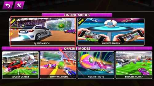 1、开启竞技准备:进入游戏后挑选赛车并选定竞技模式,明确“通过撞击足球使其进入球门”的目标,熟悉赛车的操控方式以及比赛规则。
