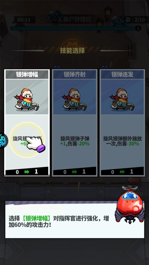 4、游戏进程中会不时出现新的技能选择界面,选对合适的技能能让后期击杀敌人更轻松高效,建议大家谨慎抉择。