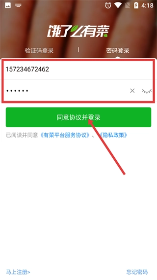 在密码登录页面输入手机号和密码,勾选已阅读并同意相关协议后,点击【同意协议并登录】按钮即可完成登录操作。