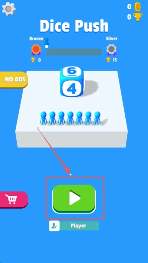 1、进入游戏:首先打开游戏主界面,然后在Bronze和Silver难度中选择6人场或者4人场,最后点击NOADS进入对战。