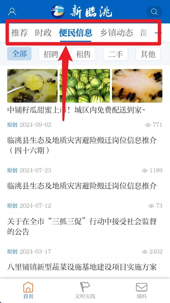 浏览资讯:打开新临洮首页,就能浏览本地最新的新闻动态、政策信息以及生活相关资讯。