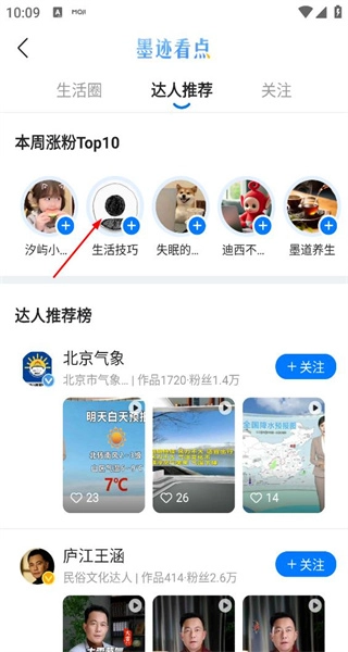 墨迹天气怎么浏览达人内容