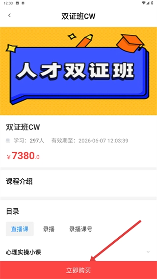 在课程详情页面,你能够查看课程介绍、课程目录等相关信息,点击【立即购买】按钮即可完成课程的购买流程。