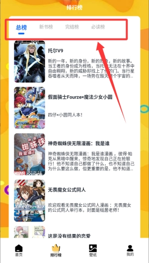 选择底部的排行榜进入新页面。