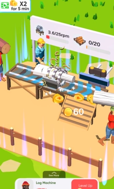 《空闲木材厂》是一款模拟经营游戏,玩家将化身木材厂老板,白手起家打造属于自己的木材商业帝国。在游戏里,你得科学规划各类资源,招募工人团队,升级生产设备,组织砍伐树木,加工处理木材原料,最后把成品推向市场获取收益,一步步拓展木材厂的经营规模。凭借对策略的运用和时间的精准管理,你能全方位感受从伐木到销售的完整产业链所带来的趣味。