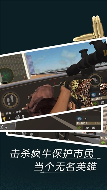 《公牛狙击手》属于动作射击类型的游戏,玩家在游戏里化身为一名无畏的狙击手,需要在多样的场景中执行各类任务,以此不断突破自身的极限。