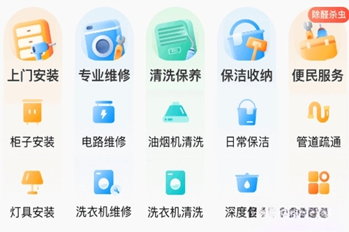 【上门维修服务】:涵盖空调、洗衣机、热水器、厨房电器、电路、家具、门窗及防水补漏等多种维修项目