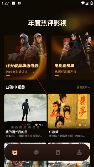 在首页找到【评分最高华语电影】选项并点击,即可进入对应的影视榜单页面。