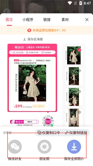 保障:唯品会App,商品均来自唯品会,皆是知名品牌,品质有保障;放心分享赚钱,无需囤货缴费,佣金实时到账;