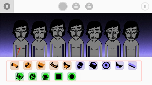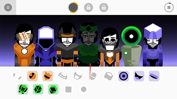 2、在游戏里,玩家得从下方的节奏盒中挑选一个节奏,然后把它拖到小人身上,这样小人就能唱歌了