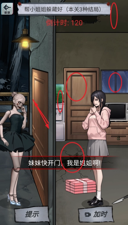 3、把房间里的少年拖到镜子前,再将镜子里伸出来的诡拖到门外的诡那里