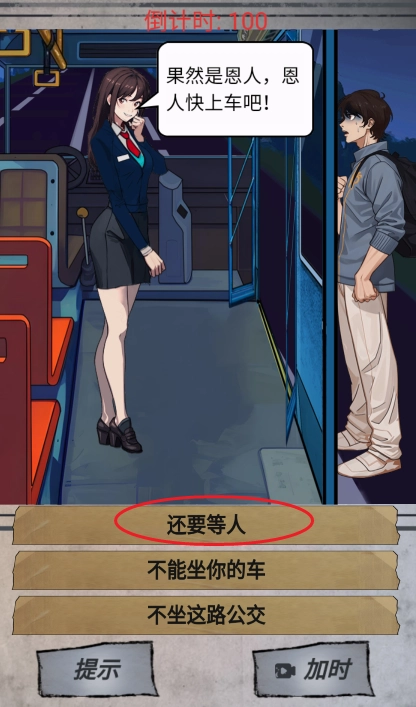 6、选择看见朋友,去招呼他一起上车