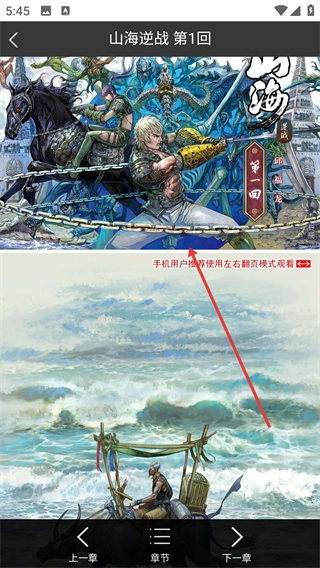 进入阅读界面后,能借助【上一章】【下一章】来切换内容,手机端建议采用左右翻页模式来浏览漫画。