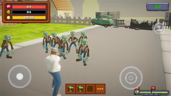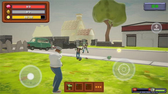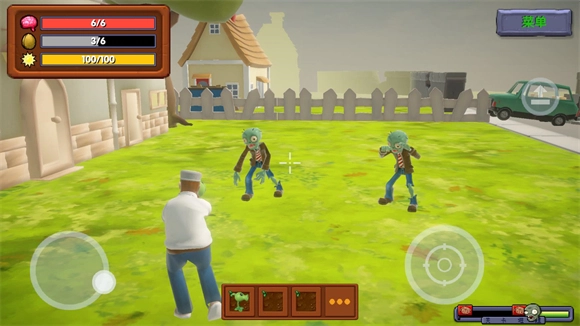 2、左侧区域用于操控戴夫的移动,右侧区域负责控制戴夫的射击,通过滑动屏幕能够调整视角,左上角则显示着戴夫的血量、护盾值和剩余子弹数量。