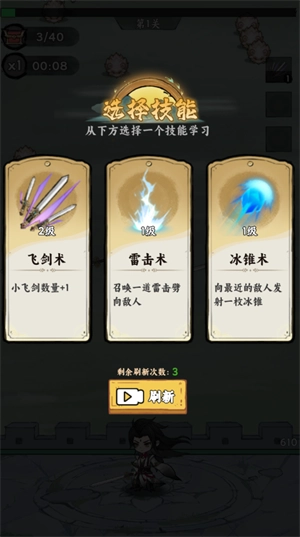 2、角色击败敌人后会掉落经验值,玩家积累足够经验值即可升级,并从3种能力中选择其一