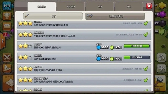4、一个优质且等级较高的部落,对游戏初期发展助力极大——部落等级高意味着酋长们能收到的支援兵种等级也高,还能遇到积极捐兵的伙伴,这对前期积累资源帮助显著。因此,在解锁城堡后要尽快修复它,并找到一个适合自己的部落。