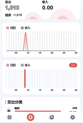 点击D图标,即可查看收入与支出的统计图,从而清晰掌握自身的消费情况。