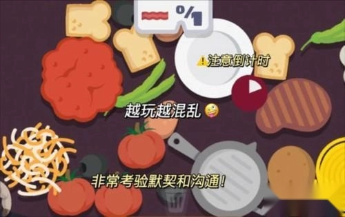 3、越往后菜品数量会不断增加,你的餐桌会变得十分杂乱,寻找所需菜品的难度也会逐渐上升,不过只要队友们配合默契,依然可以快速通过关卡哦