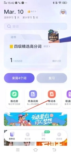 1、我们直接打开万词王软件,点击界面中间的“单词本”按钮;