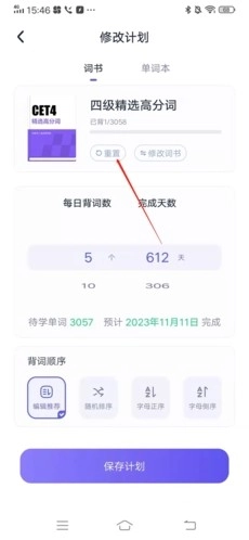 4、接着把背单词计划设置妥当,点击保存按钮,就能顺利完成换书操作。