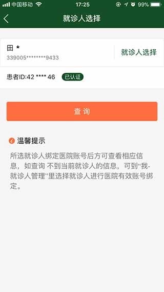 2、点击【就诊人选择】,选择要查询的就诊人;