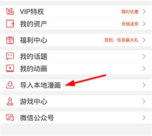 3、在页面中找到“导入本地漫画”按钮并点击。
