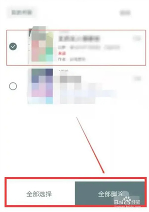 按照图中的指引,先把要删除的书籍勾选上,接着点击“全部删除”按钮,这样就能完成删除操作了。