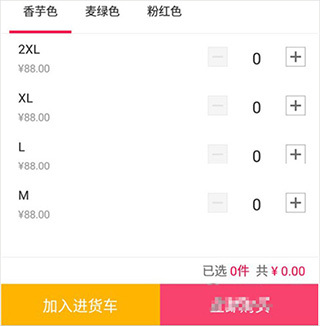 3、在挑选完商品的颜色、款式以及大小和数量后,点击加入购物车。这样,你就可以通过首页的购物车选项找到已添加的商品了;