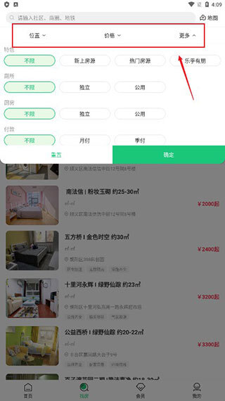 3该功能极大地提升了找房体验,通过地图找房让用户能够直观地看到房源的具体位置及周边环境,比如交通、学校、医院等配套设施一目了然。这不仅节省了用户的时间,还帮助他们做出更加明智的选择,确保所选住房符合个人或家庭的实际需求。对于重视居住环境和生活便利性的租房者来说,这是一个非常实用且贴心的设计。