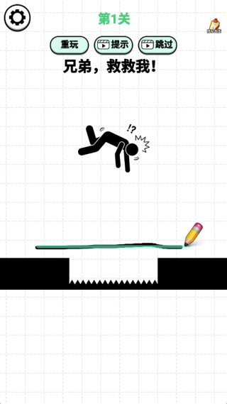1、玩家需要快速画出线条来阻止火柴人落入陷阱,在下方直接绘制直线即可解救火柴人,操作方式非常简便。